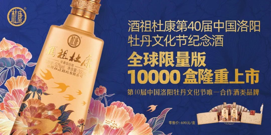同时,杜康也推出了“酒祖杜康∙第40届中国洛阳牡丹文化节纪念酒”,集国花牡丹文化、洛阳古都文化和杜康酒祖文化于一体,承载民族文化厚重之美,尽显国潮产品祥瑞之气,诚挚表达了人们对品质白酒和美好生活的追求。
