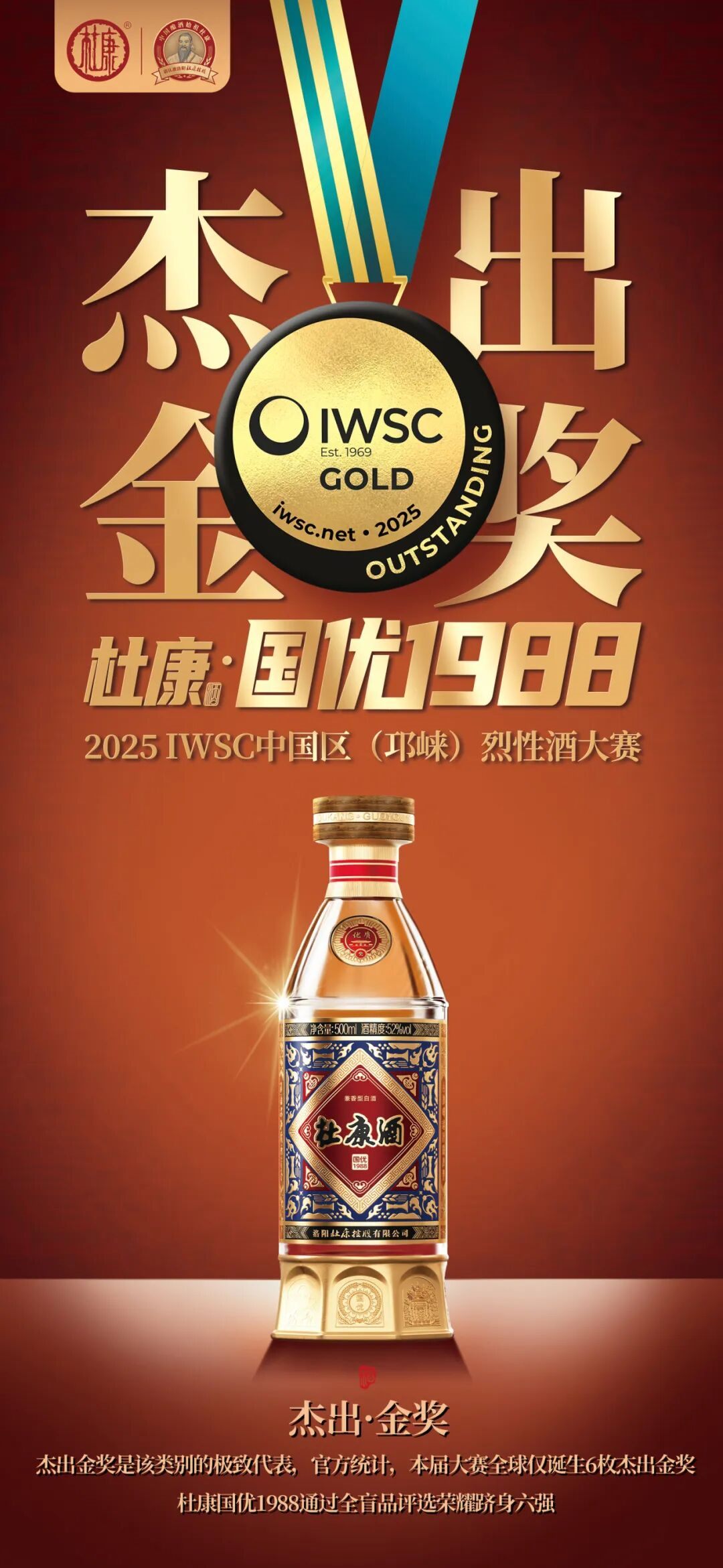 作为洛阳杜康控股的核心产品,杜康酒·国优1988屡获国际权威赛事认可,此前已荣膺“2025 IGC国际烈酒(香港)大赛金奖”。此次再获IWSC“杰出金奖”,进一步巩固了杜康在中国白酒的领军地位,也向全球传递出强烈信号:杜康作为中国文化名酒,正以世界级品质标准强势回归。