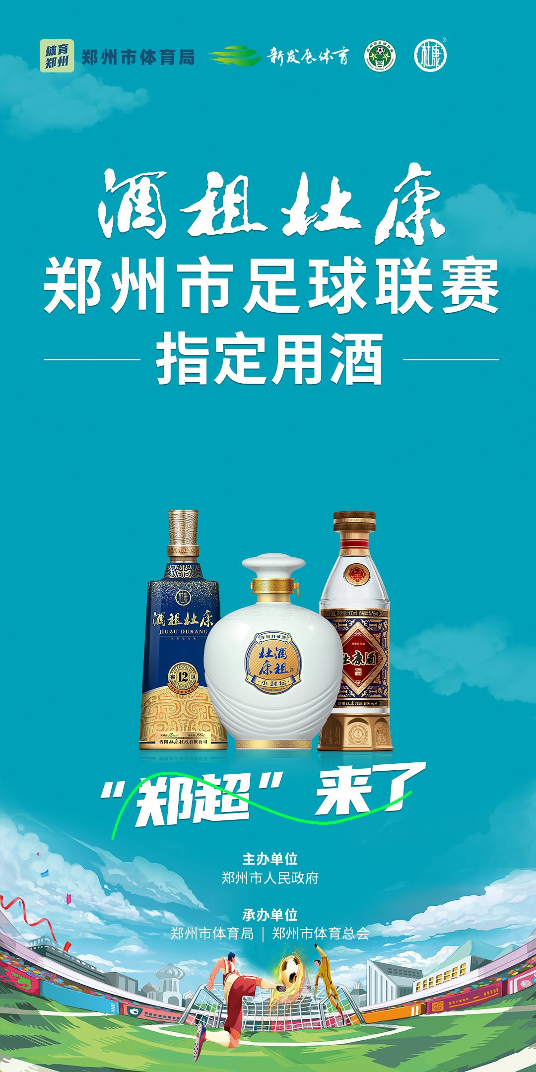 在这场全民参与的足球盛宴中,酒祖杜康荣膺郑州市足球联赛指定用酒,为如火如荼的郑超再添一把“热情之火”。